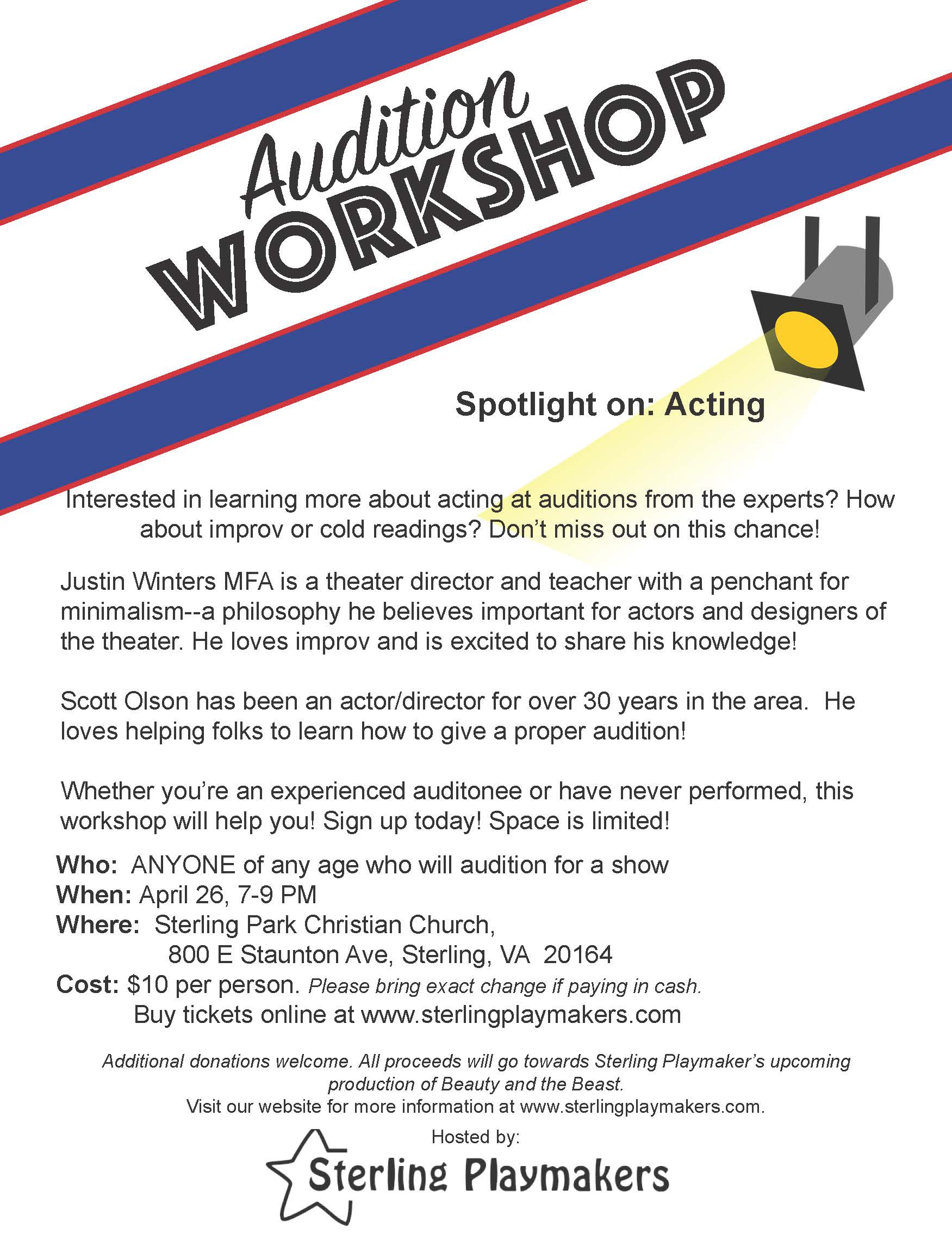 I developed and ran workshops aimed at raising money for the show as well as promoting the upcoming auditions. I also developed and put together multiple videos aimed at promoting auditions, released over social media. These videos, along with the other promotional campaigns, brought in almost 200 people to audition for the show.